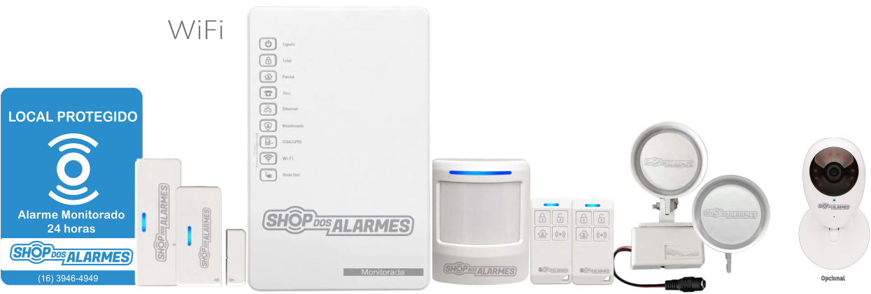 Benefícios: Afasta o ladrão antes de entrar no estabelecimento quando o alarme é acionado, Duração das baterias em média 4 anos, Opção com ou sem fio, A central detecta quando alguém tentar violar o magnético e avisa o cliente.